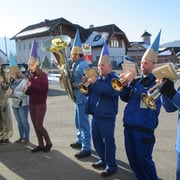 Bei wunderschönem Wetter hat die Musikkapelle hat ein Ständchen zum Besten gegeben und das „Rot-blaue-Kreuz“ hat uns bestens mit Infusionen versorgt.